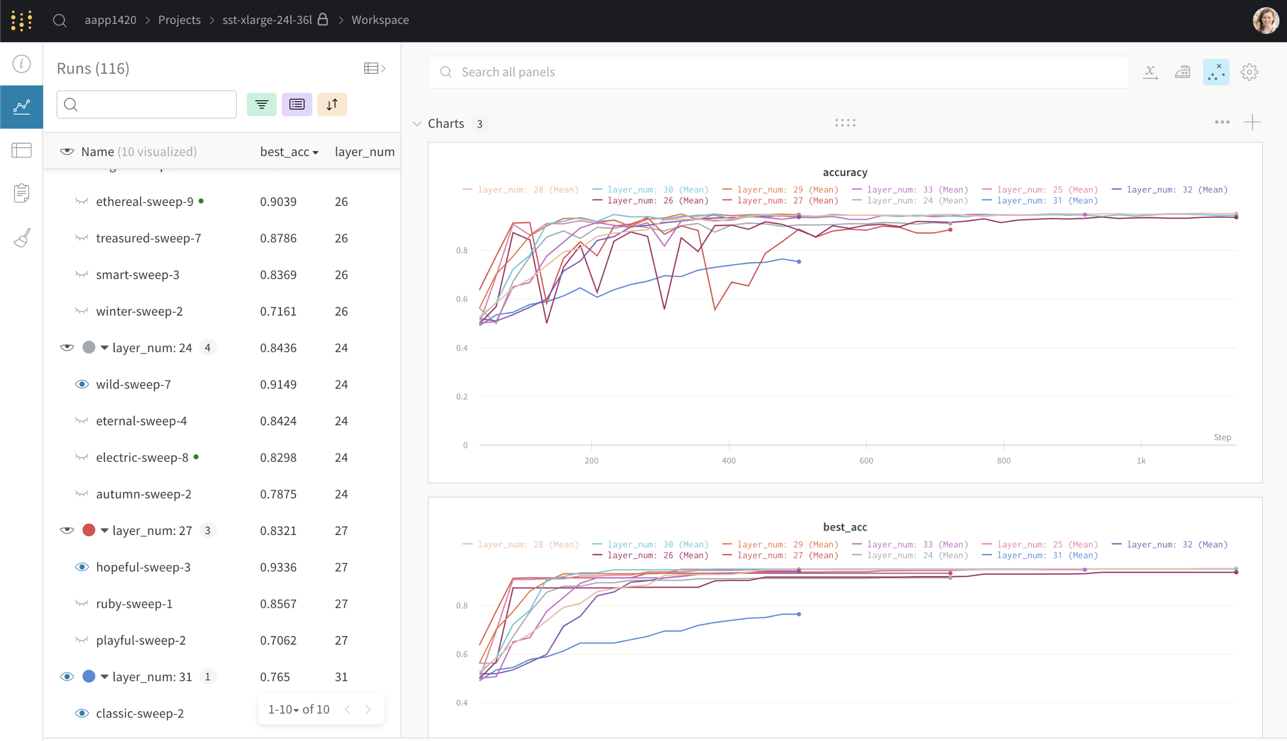 各グループのトップrunの横にある「目」のアイコンをオンにして、チャート上の最大精度を可視化します。
