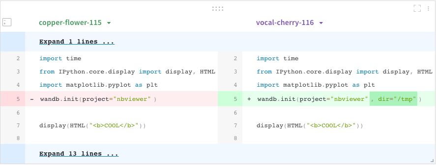 もう一つのボーナス機能として、ノートブックのdiff機能があります。Code Comparerパネルで生のJSONを表示する代わりに、各セルを抽出し、変更された行を表示します。Jupyterをより深くプラットフォームに統合するためのエキサイティングな機能がいくつか計画されています。
