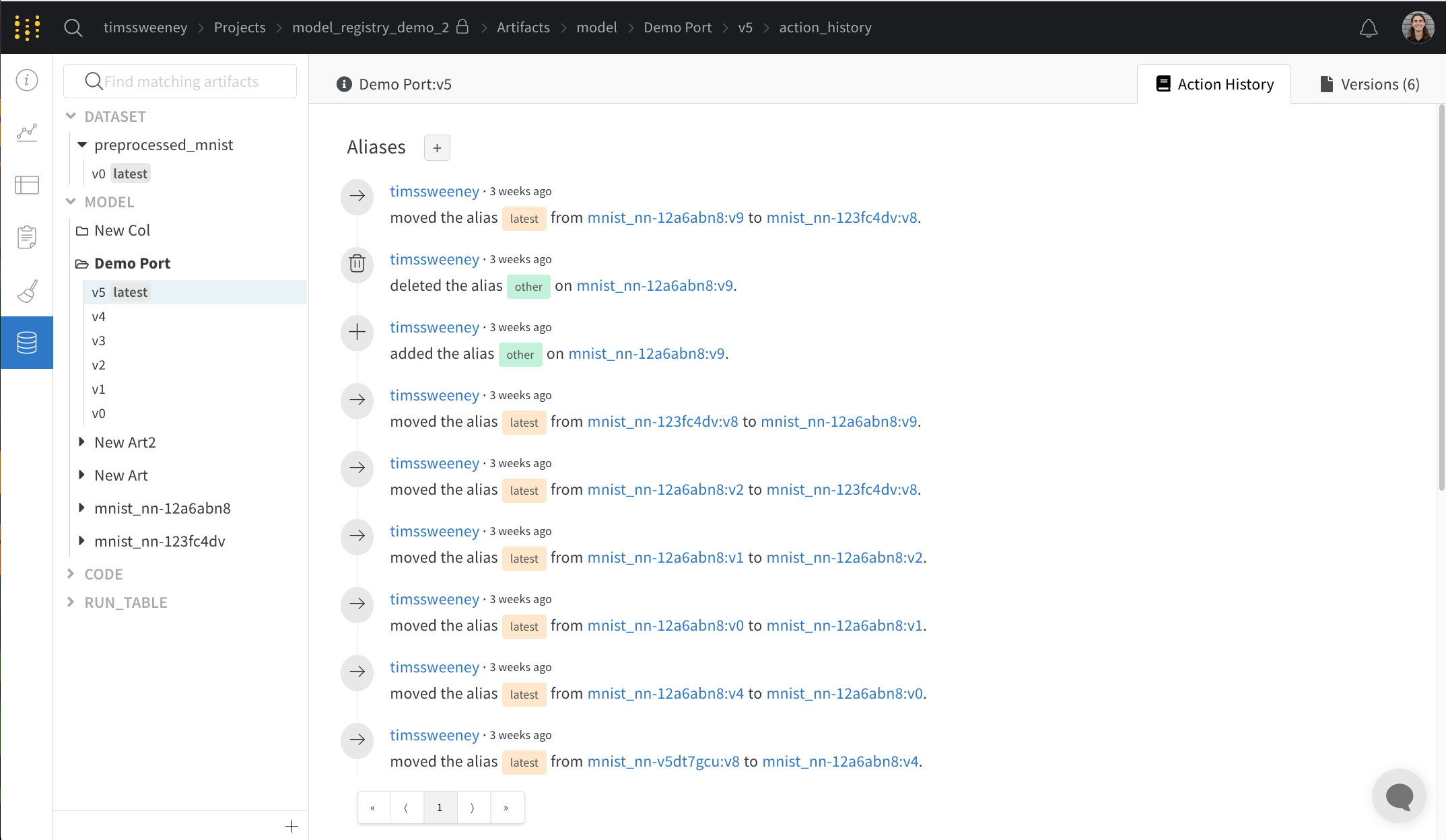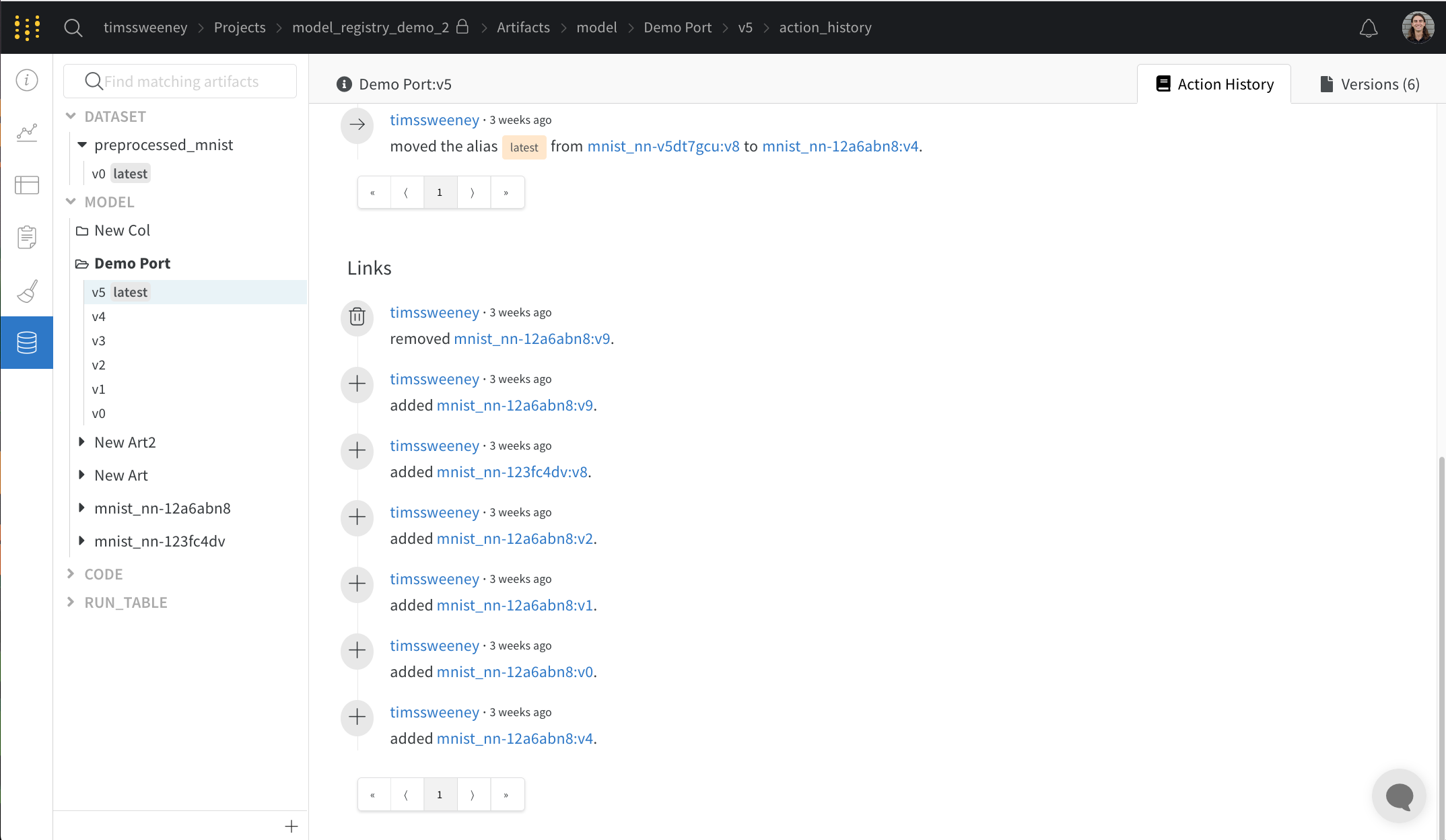 Explodeトグルをクリックすると、個別のアーティファクトバージョンとそれらを接続する特定のrunが表示されます。