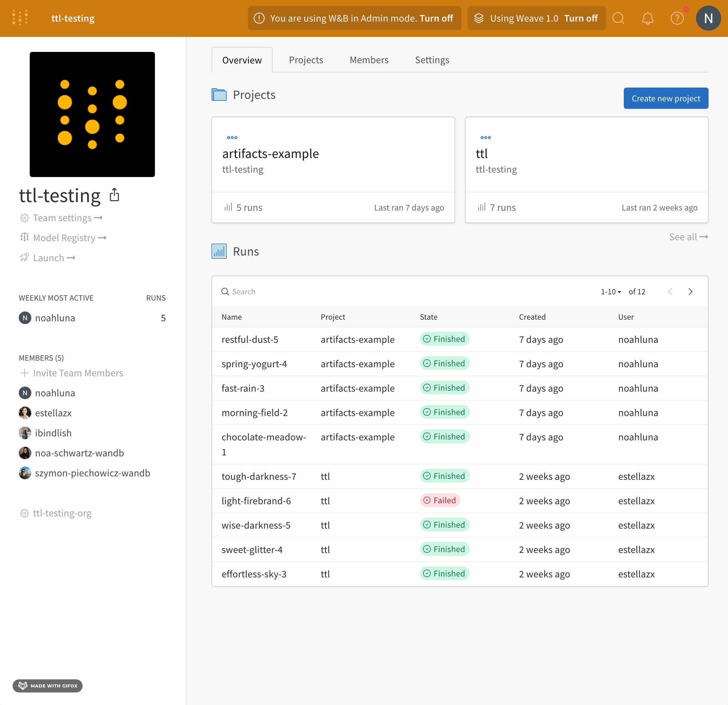 W&B 앱에서 아티팩트 TTL을 사용하여 데이터 보존을 관리하는 방법을 배우려면 이 비디오 튜토리얼을 확인하세요.