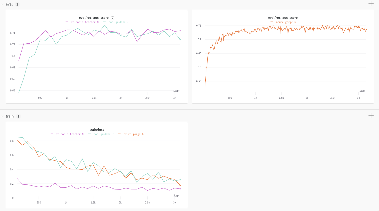 트레이닝 손실과 평가 메트릭은 Weights & Biases에 자동으로 로그될 수 있습니다. 선택적 평가는 DeepChem의 ValidationCallback을 사용하여 활성화할 수 있으며, WandbLogger는 ValidationCallback 콜백을 감지하고 생성된 메트릭을 로그할 것입니다.