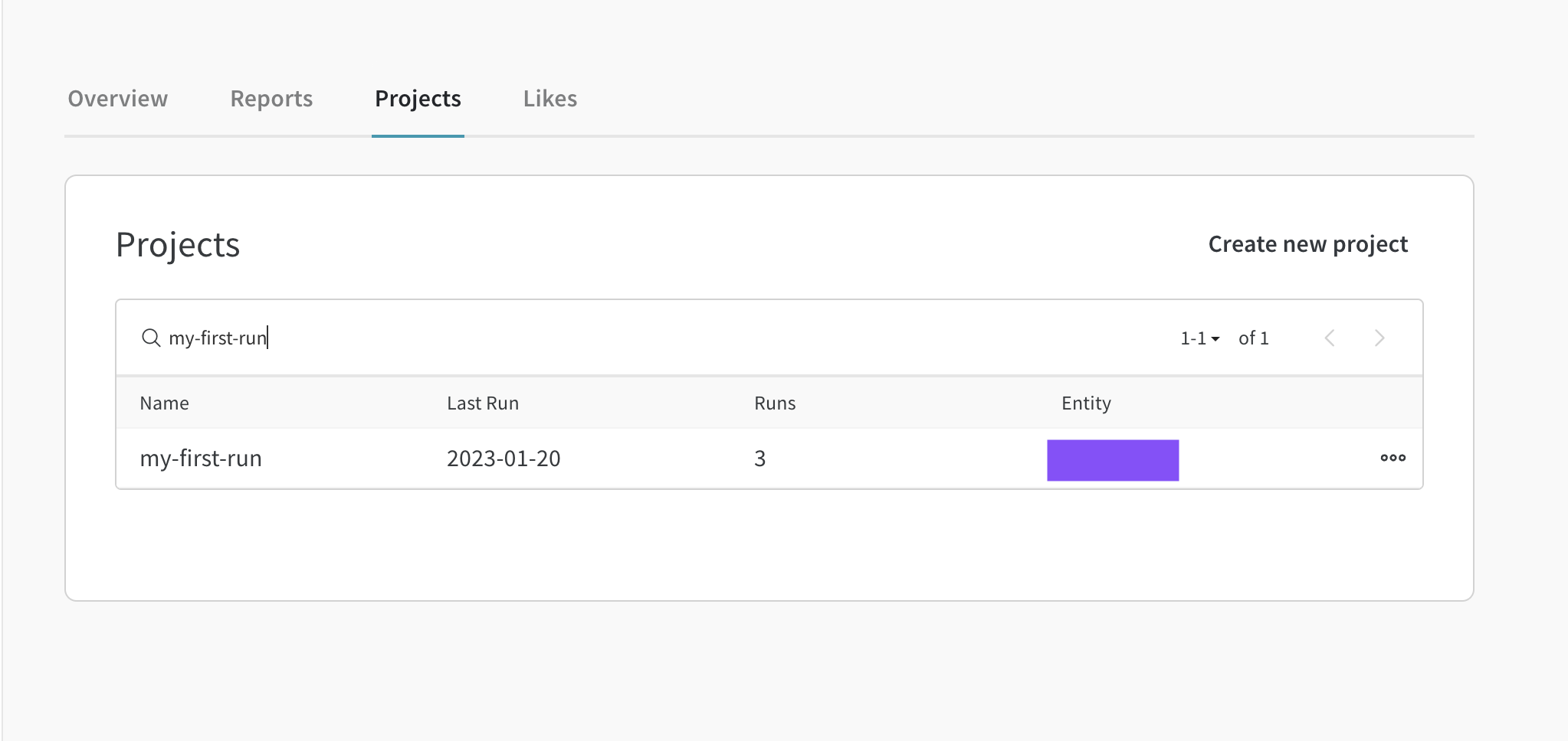다음 예에서는 "my-first-run"이라는 프로젝트를 검색합니다: